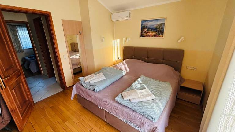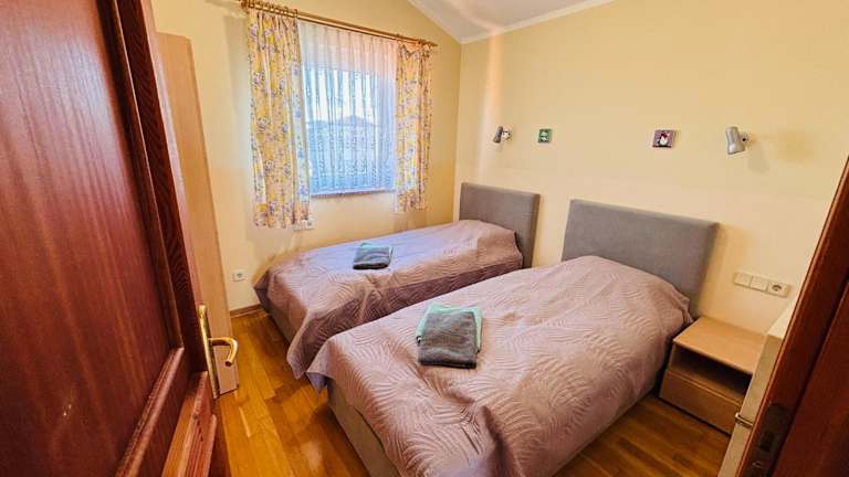 Die Ferienwohnung bietet zwei Schlafzimmer, ein Wohnzimmer und eine voll ausgestattete Küche, die mit einem Kühlschrank und einer Kaffeemaschine ausgestattet ist. Das Badezimmer verfügt über ein Bidet und eine Dusche. Handtücher und Bettwäsche werden bereitgestellt.