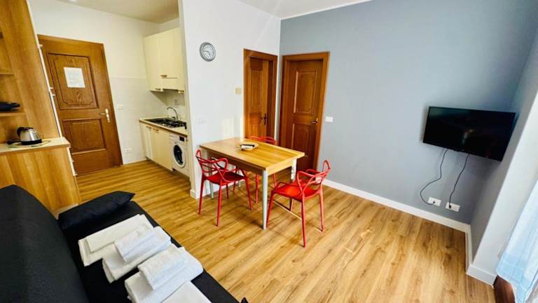 Die Ferienwohnung besteht aus einem Schlafzimmer und einem Wohnzimmer. Sie umfasst einen Satelliten Flachbild-TV, eine gut ausgestattete Küche sowie ein Badezimmer mit Bidet und Dusche.
