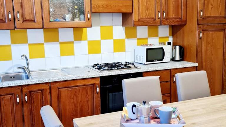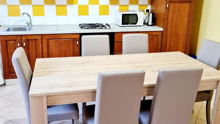 Die Zimmer in der Casa Colonna Montegrotto terme verfügen über eine Terrasse und einen Sitzbereich, einen Flachbild-TV sowie eine voll ausgestattete Küche mit Kühlschrank, Ofen, Mikrowelle, Herdplatte und Wasserkocher. Ein eigenes Badezimmer mit Bidet und Haartrockner ist ebenfalls vorhanden.