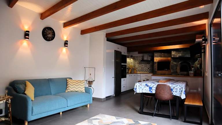Das Ferienhaus verfügt über 2 Schlafzimmer, ein Wohnzimmer sowie eine gut ausgestattete Küche mit Kühlschrank und Ofen. Ein Flachbild-TV, ein Badezimmer mit Dusche sowie Handtücher und Bettwäsche sind ebenfalls vorhanden.