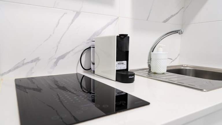 Die Ferienwohnung verfügt über ein Schlafzimmer, ein Wohnzimmer sowie eine voll ausgestattete Küche mit Kühlschrank und Kaffeemaschine. Das Badezimmer ist mit einer Dusche und einem Haartrockner ausgestattet. Zur Ausstattung gehören auch Handtücher und Bettwäsche. Die Unterkunft ist klimatisiert und bietet Nichtraucherzimmer.