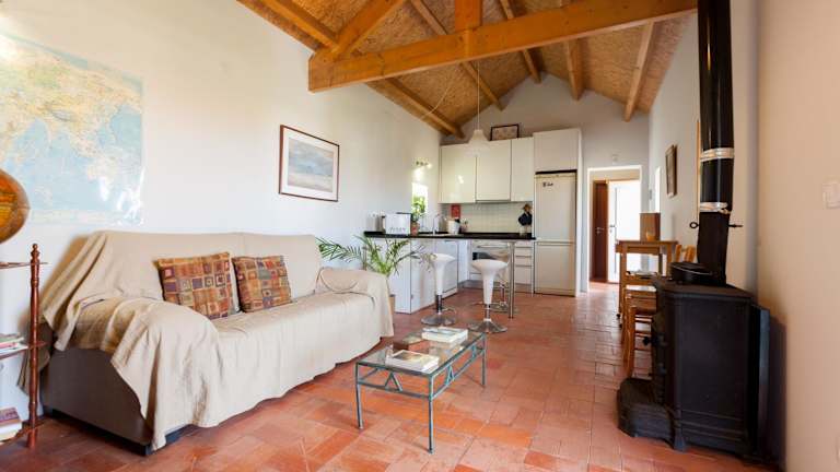 Das Haus verfügt über ein gemütliches Schlafzimmer, eine voll ausgestattete Küchenzeile und einen Essbereich. Das Wohnzimmer ist mit bequemen Sofas, einem Kamin und einem Fernseher ausgestattet. Ein eigenes Bad und eine Waschmaschine stehen Ihnen ebenfalls zur Verfügung.