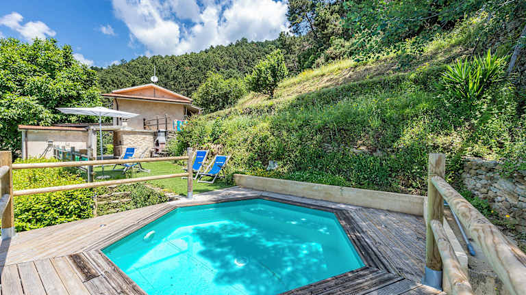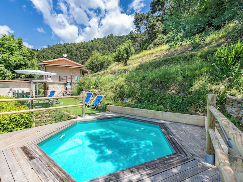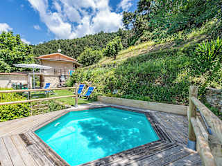 Das Ferienhaus verfügt über einen Außenpool, der je nach Saison geöffnet ist. Gäste können sich im Garten entspannen und den schönen Ausblick genießen. In der Umgebung gibt es auch viele Möglichkeiten zum Wandern und Erkunden der Natur. Kostenfreie Parkplätze stehen den Gästen zur Verfügung.