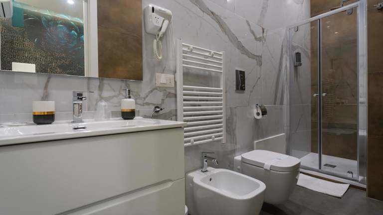 Die Zimmer sind mit einem Flachbild-TV sowie einem eigenen Badezimmer mit kostenlosen Pflegeprodukten ausgestattet. Jedes Zimmer bietet ein voll ausgestattetes Badezimmer mit Dusche, Haartrockner, Bidet und Hausschuhen. Die Unterkunft bietet eine Bequemlichkeit, die den Aufenthalt angenehm gestaltet.
