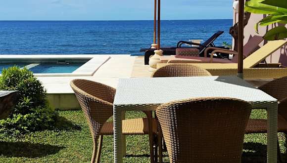 Die Zimmer sind geschmackvoll eingerichtet und bieten Annehmlichkeiten wie Klimaanlage, Kabel-TV, Minibar und ein eigenes Badezimmer mit Dusche und Hausschuhen. Einige Zimmer verfügen über eine Badewanne sowie einen Sitzbereich mit Sofa. Alle Zimmer bieten wunderschöne Ausblicke auf den Garten und das glitzernde Meer von Bali.