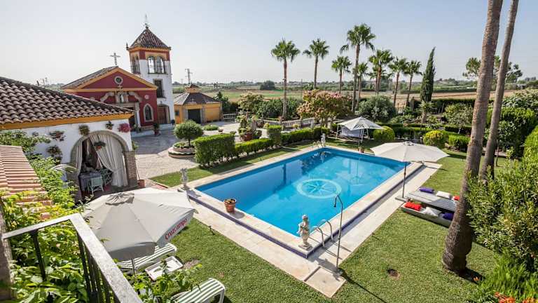 Das Ferienhaus Casa de Campo con Piscina in Sevilla befindet sich in Los Palacios y Villafranca, in der Nähe von Sevilla, etwa 34 km von der Plaza de España, Maria Luisa Park und Alcazar entfernt. Der nächstgelegene Flughafen ist der Flughafen Sevilla-San Pablo, der 49 km entfernt ist.