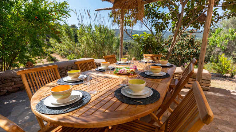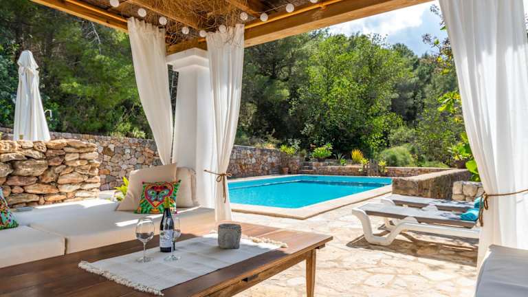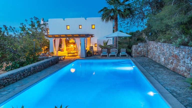Die Villa Casa de campo con piscina - relax en Ibiza beeindruckt durch einen herrlichen Bergblick und ermöglicht Übernachtungen in einer heimeligen Umgebung mit eigenem Pool, Garten und Grillmöglichkeiten. Kostenfreies WLAN und eine private Parkiermöglichkeit sind ebenfalls vorhanden. Check-in ist ab 16:00 Uhr bis 23:00 Uhr möglich, während der Check-out zwischen 06:00 Uhr und 11:00 Uhr stattfindet. Haustiere sind nicht gestattet, und die Unterkunft bietet einen kostenpflichtigen Flughafentransfer an.
