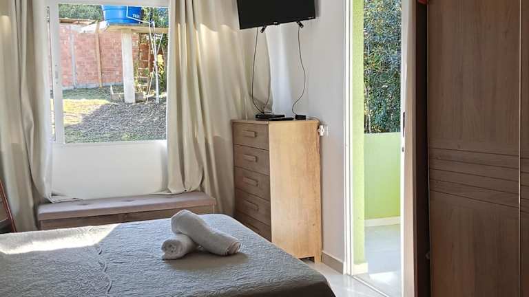 Die Unterkunft Casa de Campo Sol & Luz befindet sich in ruhiger Lage mit Gartenblick und befindet sich ungefähr 26 km vom Oscar Niemeyer Museum entfernt. Der Flughafen Curitiba ist etwa 34 km entfernt. Die Umgebung bietet einen schönen Blick auf den See.