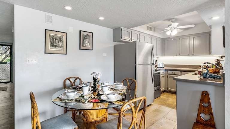Das Casa De Emdeko 235 ist eine komfortable Unterkunft mit Balkon und Gartenblick. Das Apartment bietet eine voll ausgestattete Küche, kostenfreies WLAN und Privatparkplätze. Die Lage ist ideal, da der Pahoehoe Beach Park und der Honl's Beach in der Nähe sind. Perfekt für einen erholsamen Urlaub!
