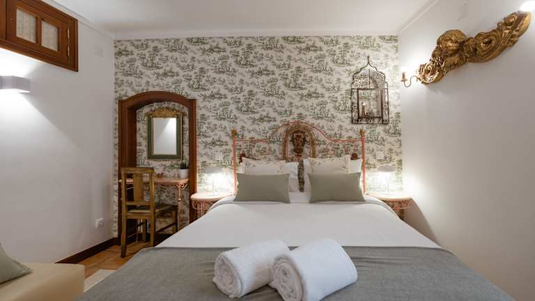 Die traditionell gestalteten Zimmer im Casa de S. Thiago de Óbidos verfügen über antike Möbel, teils ein holzgeschnitztes Bett, Kabel-TV, Heizung und ein eigenes Bad mit Pflegeprodukten. Einige Zimmer bieten zudem einen Blick auf die Stadt.
