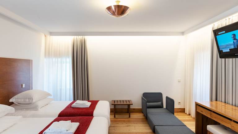 Die Zimmer in der Casa de Santa Cruz sind komfortabel ausgestattet und verfügen über einen Schreibtisch sowie ein eigenes Badezimmer mit Bidet und kostenlosen Pflegeprodukten. Jedes Zimmer bietet einen Flachbild-TV und eine Klimaanlage. Einige Zimmer sind zusätzlich mit einer Veranda oder einem Patio ausgestattet und es stehen Bettwäsche sowie Handtücher zur Verfügung.
