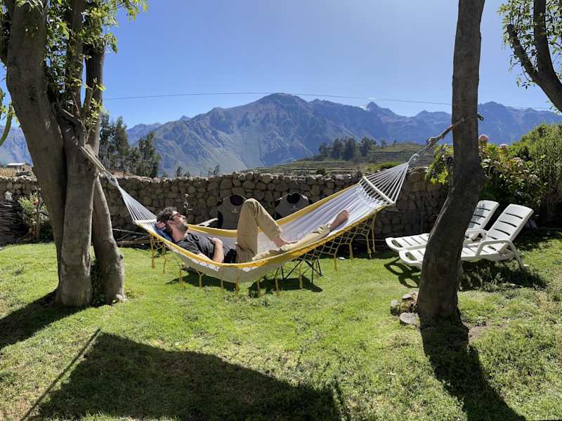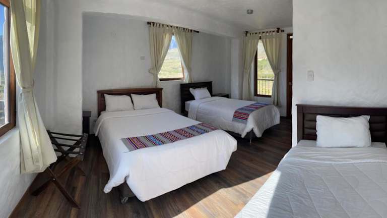 Die Unterkunft befindet sich in Cabanaconde und bietet einen beeindruckenden 270-Grad-Blick auf die Anden, Vulkane und Pre-Inka-Terrassen. Der berühmte Colca Canyon liegt lediglich 16 km entfernt, was die Umgebung besonders attraktiv für Naturliebhaber und Abenteurer macht.