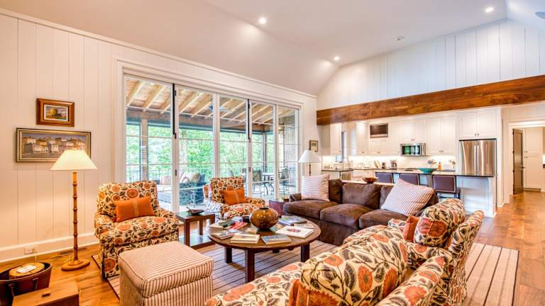 Gelegen in Lake Toxaway, North Carolina, bietet die Unterkunft einen Blick auf die Berge und einen schönen Garten.