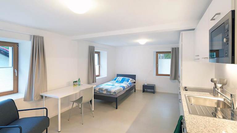 Die Unterkunft bietet eine Gemeinschaftsküche, die mit einem Kühlschrank, einer Mikrowelle und einer Herdplatte ausgestattet ist. Ein Essbereich ist ebenfalls vorhanden, was die Zubereitung von eigenen Mahlzeiten ermöglicht.
