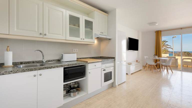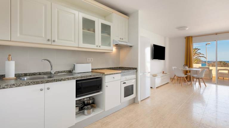 Die Ferienwohnung ist ausgestattet mit zwei Schlafzimmern, einem Badezimmer, Bettwäsche, Handtüchern sowie einem Fernseher mit Satellitenkanälen. Eine voll ausgestattete Küche und eine Terrasse mit Stadtblick runden die Ausstattung ab.