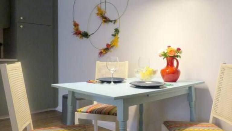 Die Ferienwohnung besteht aus einem Schlafzimmer, einem Wohnzimmer und einer voll ausgestatteten Küche, die mit einem Kühlschrank und einer Kaffeemaschine ausgestattet ist. Zudem gibt es ein Badezimmer mit Dusche. Handtücher und Bettwäsche werden bereitgestellt.