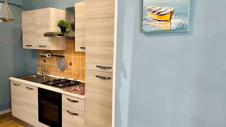 Casa del Pescatore bietet eine Ferienwohnung mit Klimaanlage, die über zwei Schlafzimmer, ein Wohnzimmer, eine voll ausgestattete Küche, ein Badezimmer und Stadtblick verfügt. Kostenloses WLAN ist in der gesamten Unterkunft verfügbar. Die Mitarbeitenden an der Rezeption stehen Gästen in Englisch und Italienisch zur Verfügung.