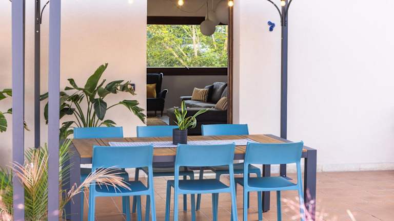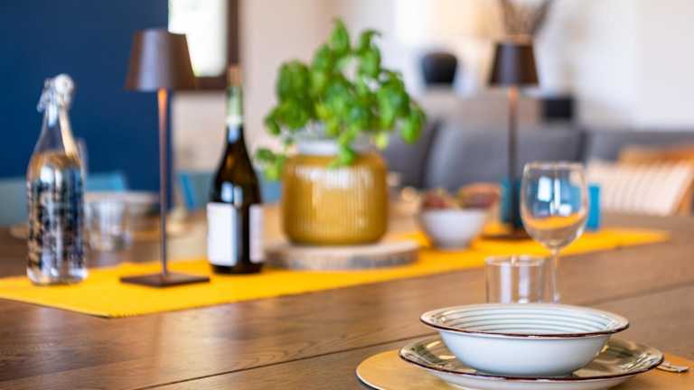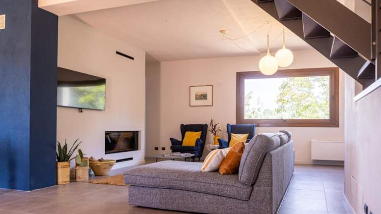 Die Unterkunft besteht aus zwei Schlafzimmern, einem Wohnzimmer und einer voll ausgestatteten Küche mit Kühlschrank und Kaffeemaschine. Es sind drei Badezimmer mit Bidet und Dusche vorhanden. Handtücher und Bettwäsche werden bereitgestellt. Das Ferienhaus ist klimatisiert und bietet Nichtraucherzimmer sowie Familienzimmer.