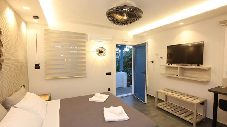 Die Wohneinheiten sind komfortabel und verfügen über eine Terrasse, Klimaanlage, Flachbild-TV sowie ein eigenes Badezimmer mit Dusche und Haartrockner. Zudem gibt es eine voll ausgestattete Küche mit Kühlschrank und Wasserkocher.