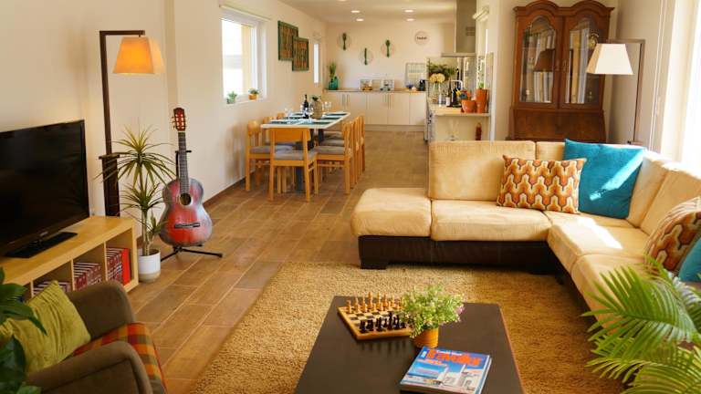 Das Ferienhaus besteht aus 3 Schlafzimmern und einem Wohnzimmer. Es verfügt über 2 Badezimmer mit Dusche und Haartrockner. Zudem sind ein Flachbild-TV mit Kabelkanälen und eine Spielekonsole vorhanden. Wifi ist in allen Bereichen verfügbar.