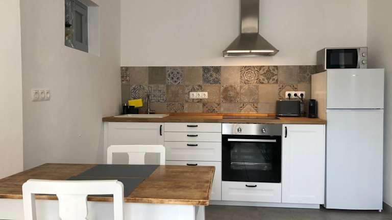 Die Ferienwohnung besteht aus einem Schlafzimmer und einem Wohnzimmer. Sie verfügt über eine voll ausgestattete Küche, ein Badezimmer mit Dusche und Haartrockner sowie Handtücher und Bettwäsche, die bereitgestellt werden.