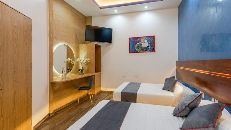 Alle Zimmer in der Unterkunft Casa Dos Lunas sind mit einem Schreibtisch, einem Flachbild-TV, einem Haartrockner und einem eigenen Badezimmer mit Dusche sowie kostenlosen Pflegeprodukten ausgestattet. Mehrere Wohneinheiten bieten Stadtblick. Es gibt King Rooms ohne Fenster und die Double Rooms befinden sich im zweiten Stock.