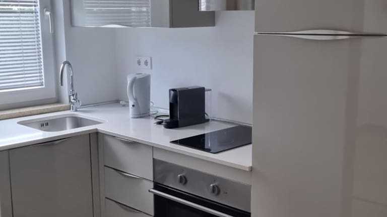 Die Ferienwohnung bietet Übernachtungsmöglichkeiten in zwei Schlafzimmern und einem Wohnzimmer. Die voll ausgestattete Küche ist mit einem Kühlschrank und einer Kaffeemaschine versehen. Ein Badezimmer mit Dusche und Haartrockner ist ebenfalls vorhanden. Handtücher und Bettwäsche werden bereitgestellt. Die Unterkunft ist klimatisiert und bietet Nichtraucherzimmer sowie Familienzimmer.