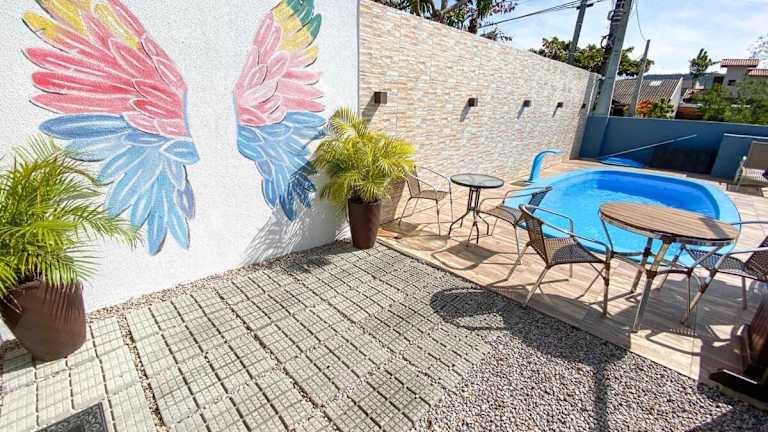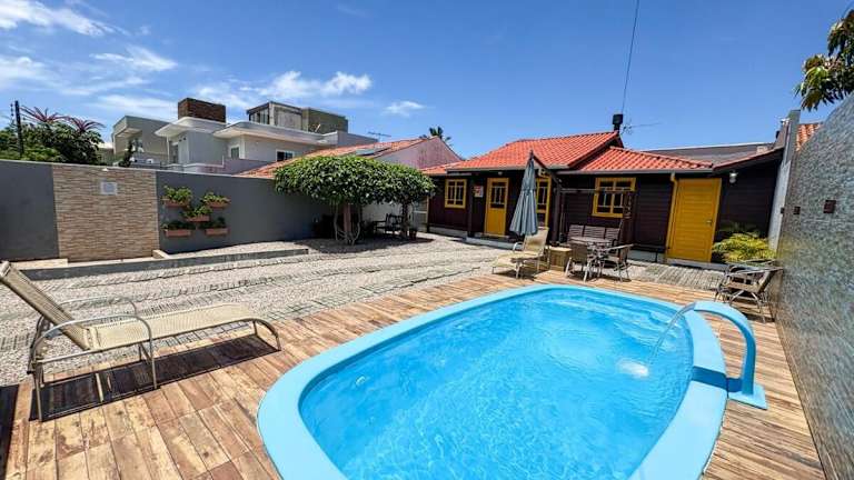 Die Unterkunft liegt in Bombinhas, 1,3 km vom Strand Praia de Bombas und 2,7 km vom Aussichtspark Bombinhas entfernt. Der nächstgelegene Flughafen ist der Flughafen Navegantes, der 55 km entfernt ist.