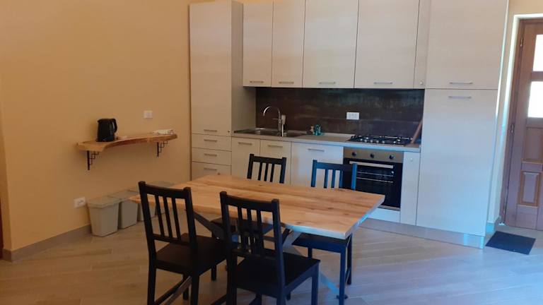 Alle Wohneinheiten sind mit einem gemütlichen Sitzbereich ausgestattet, der ein Schlafsofa umfasst. Der Essbereich ist ebenfalls Teil der Einrichtung, und die voll ausgestattete Küchenzeile bietet diverse Kochmöglichkeiten, einschliesslich Kühlschrank, Ofen, Herdplatte und Toaster. Jedes Zimmer verfügt über ein eigenes Badezimmer, das mit einem Bidet und Hausschuhen ausgestattet ist.
