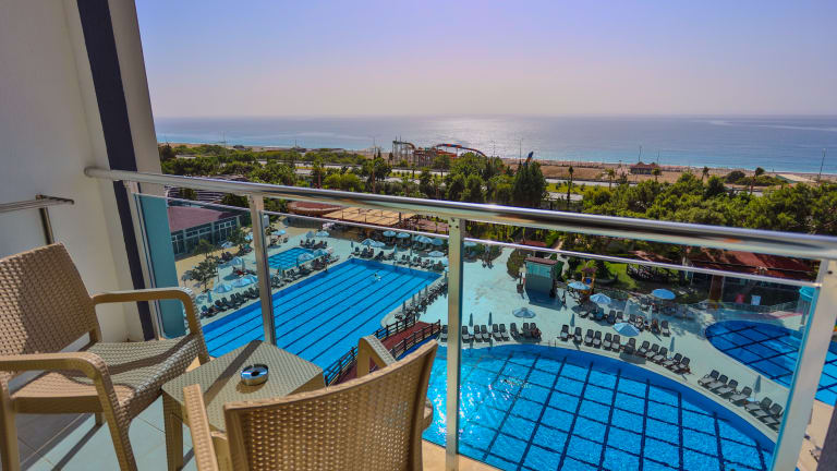 Lage: Das Hotel überblickt über das Blau des Mittelmeers in der Süd Küste Antalya. Die Siedlung liegt außerhalb von Side an einem friedlichen Ort, umgeben von so vielen Arten endemischer Bäume am Rande des Taurus Gebirges. Die Alt Stadt Kalelibelen, das Alara Schloss, Side und die Alt Stadt Side sind nur einige von Hunderten Attraktionen, die in der Umgebung verfügbar sind. Die Lage in der Mitte von 2 Flughäfen (Flughafen Antalya und Flughafen Gazipaşa) macht das Hotel mit so vielen verschiedenen Flugmöglichkeiten noch einfacher zu erreichen. Ausstattung: Das Hotel wurde im Jahre 2008 gebaut, und in diesem Jahre 2023 renoviert. Die YEY GROUPE investierte in die Gegend und gründete die Marke Casa Fora Beach Resort. Das Hotel verfügt über 350 Zimmer mit verschiedenen Ansichtsoptionen. Das Hotel verfügt über ein sehr großes Grundstück und hat eine Gesamtfläche von 70 Hektar. Die Strandeinrichtung verfügt über insgesamt 30 Hektar und das Baugebiet mit Hotelanlage verfügen über 40 Hektar. Die Strandeinrichtung bietet ihnen einen Wasserpark, ein À-la-carte-Restaurant (Fischrestaurant), einen Sandstrand mit Liegen, eine Snackbar, einen Yogabereich und ein Volleyballplatz. Im Gebäudebereich befinden sich die Zimmer, 2 weitere À-la-carte-Restaurants (ein türkisches Restaurant und ein italienisches Restaurant), ein Hauptrestaurant, eine Snackbar, ein geschlossenes Hallenbad, eine Lobby Bar, ein Spa – Center mit Fitnessraum und natürlich eine Einkaufsstraße mit verschiedenen Geschäften und einem Kiosk Markt. Für ihre Unterhaltung bieten wir ihnen ein Anfi -Theater, einen Kinderclub, ein Spielplatz mit Spielzimmer und diverse Aktivitäten an. Das Hauptgebäude ist aufgeteilt auf 3 Teile und ist auf flacher Ebene aufgestellt, so dass es für Sie sehr einfach ist, die Zimmer zu betreten. Es befinden sich behindertengerechte Zimmer in unserer Hotelanlage. Check-in/-out Service ist rund um die Uhr. Das WLAN-Internet ist im gesamten Hotelbereich verfügbar. Einen Schönheitssalon und Friseur bieten wir ihnen auch im Hauptgebäude an. Einen ärztlichen Service haben sie rund um die Uhr für eventuelle Notfälle. Einen Offenen Parkplatz im Hotelbereich bieten wir ihnen auch an.