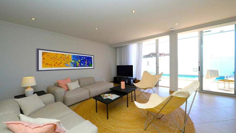 Die Villa ist mit 4 Schlafzimmern, einer voll ausgestatteten Küche mit Kühlschrank und Geschirrspüler sowie 5 Badezimmern ausgestattet. In den Badezimmern finden Gäste eine Dusche, einen Haartrockner und eine Waschmaschine vor. Ein Wohnzimmer mit TV steht ebenfalls zur Verfügung, zusätzlich gibt es einen Balkon, der zum Entspannen einlädt.