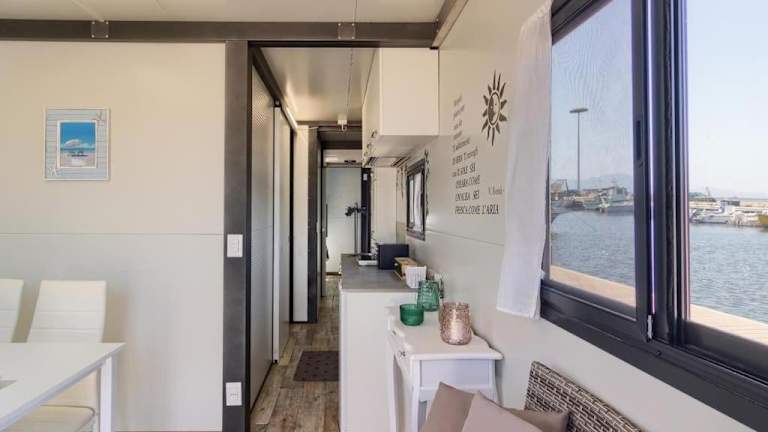 Die Casa Galleggiante "Albachiara" real sea suite Cagliari - S'Elmo bietet Übernachtungsmöglichkeiten mit Meerblick. Die Unterkunft verfügt über eine Terrasse sowie eine Sonnenterrasse. Es gibt kostenlose Fahrräder für die Gäste. Zudem wird kostenloses Wifi in der gesamten Unterkunft bereitgestellt. Der Check-in erfolgt ab 14:00 bis 19:00 Uhr, während der Check-out bis 10:00 Uhr möglich ist. Haustiere sind erlaubt und Parkiermöglichkeiten sind ebenfalls verfügbar.