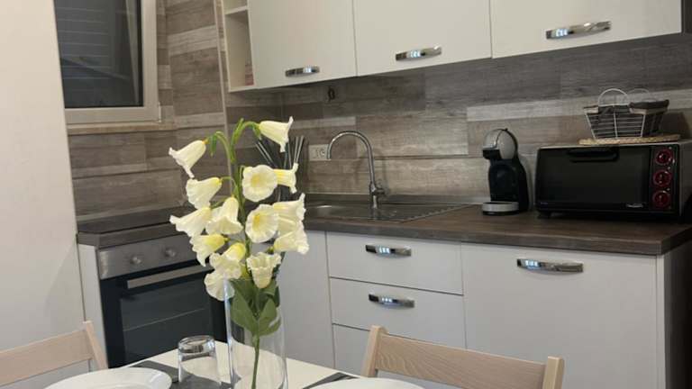 Das Ferienhaus besteht aus einem Schlafzimmer, einem Wohnzimmer sowie einer voll ausgestatteten Küche mit Kühlschrank und Kaffeemaschine. Es verfügt zudem über ein Badezimmer mit Bidet und Dusche. Handtücher und Bettwäsche werden bereitgestellt.