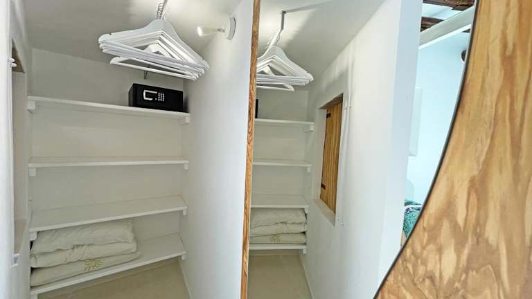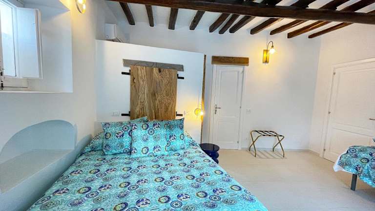 Das Ferienhaus umfasst ein klimatisiertes Schlafzimmer sowie ein Badezimmer mit Bidet, Dusche und kostenlosen Pflegeprodukten. Handtücher und Bettwäsche werden bereitgestellt.