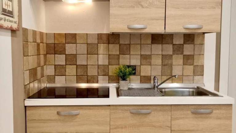 Die Ferienwohnung verfügt über eine voll ausgestattete Küche, in der sich Gäste selbstverpflegen können.