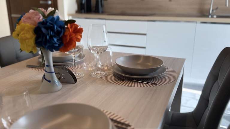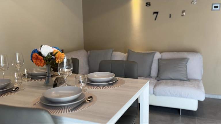 Die Ferienwohnung verfügt über eine Terrasse mit Bergblick, 2 Schlafzimmer, ein Wohnzimmer sowie eine gut ausgestattete Küche. Ein Satelliten-Flachbild-TV ist ebenfalls vorhanden. Das Badezimmer ist mit einem Bidet und einer Dusche ausgestattet. Handtücher und Bettwäsche werden bereitgestellt.