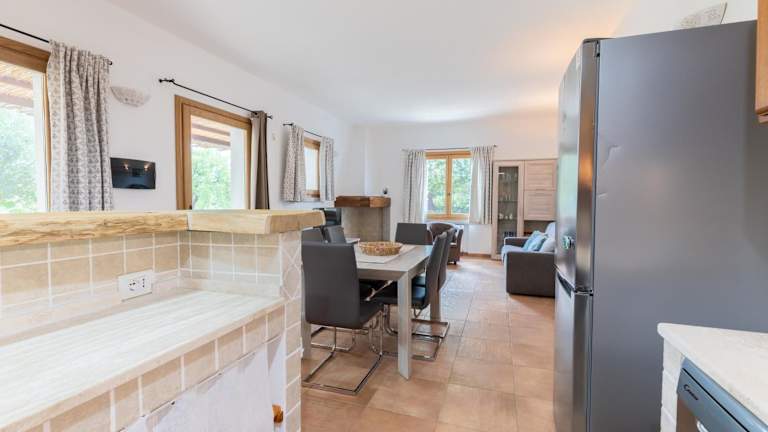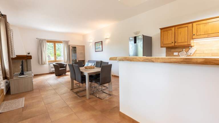 Das Ferienhaus umfasst ein Schlafzimmer, ein Wohnzimmer und ein Badezimmer mit Dusche und Bidet. Ein Flachbild-TV sorgt für Unterhaltung. Die Einrichtung ist geschmackvoll und fördert eine behagliche Atmosphäre, ideal für einen erholsamen Aufenthalt.