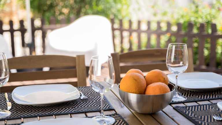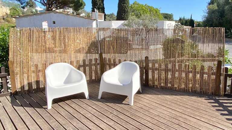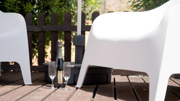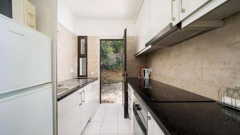 Das Ferienhaus verfügt über zwei separate Schlafzimmer, ein Wohnzimmer sowie eine voll ausgestattete Küche mit Kühlschrank und Geschirrspüler. Ein Badezimmer ist ebenfalls vorhanden. Handtücher und Bettwäsche werden bereitgestellt.