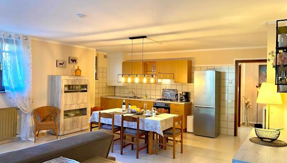 Die Ferienwohnung umfasst 3 Schlafzimmer, ein Badezimmer mit Bidet sowie eine gut ausgestattete Küchenzeile mit Kühlschrank und Geschirrspüler. Ein Flachbild-TV mit Satellitenkanälen ist ebenfalls vorhanden. Handtücher und Bettwäsche können gegen Aufpreis bereitgestellt werden.