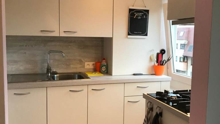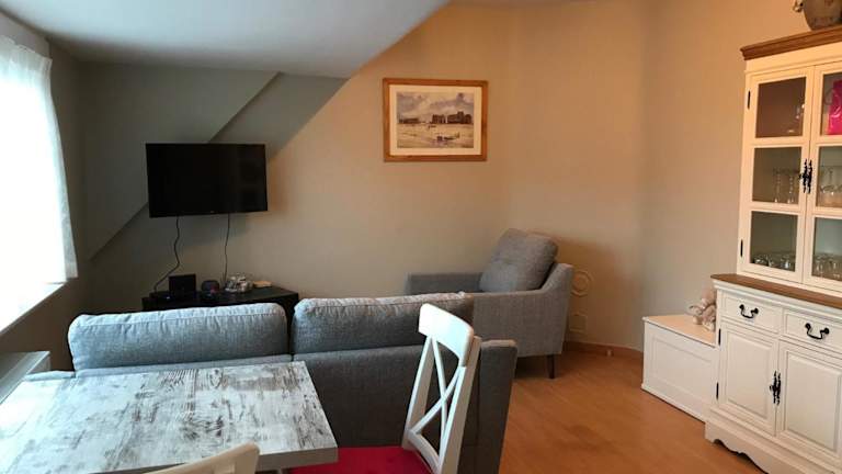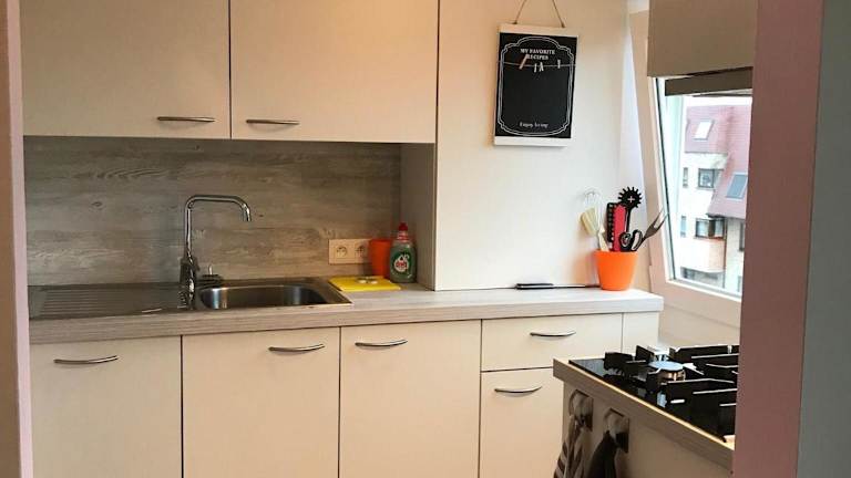 Die Ferienwohnung verfügt über ein Schlafzimmer und bietet Annehmlichkeiten wie einen Flachbild-TV mit Kabelkanälen, eine gut ausgestattete Küche mit Kühlschrank und Geschirrspüler sowie ein Badezimmer mit Dusche. Handtücher und Bettwäsche werden bereitgestellt. Es sind keine gemeinschaftlich genutzten Materialien vorhanden, um den Aufenthalt hygienisch zu gestalten.