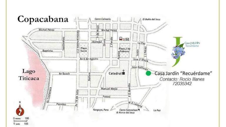 Die Casa Jardín Recuérdame en Copacabana bietet Übernachtungsmöglichkeiten in einem ruhigen Umfeld mit einem heimeligen Garten. In der Unterkunft stehen den Gästen eine Gemeinschaftsküche und eine Gemeinschaftslounge zur Verfügung, die den Aufenthalt angenehm gestalten. Ein kostenloser Privatparkplatz ermöglicht eine stressfreie Anreise mit dem Velo oder Auto.