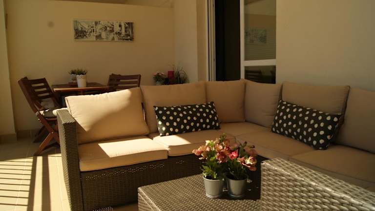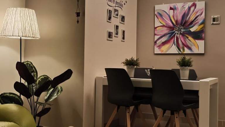Die Ferienwohnung umfasst 2 Schlafzimmer, ein Wohnzimmer sowie eine voll ausgestattete Küche mit Kühlschrank und Kaffeemaschine. Zudem verfügt sie über ein Badezimmer mit Bidet und Dusche. Handtücher und Bettwäsche werden bereitgestellt. Weitere Annehmlichkeiten wie Klimaanlage und Internetzugang sind ebenfalls vorhanden.