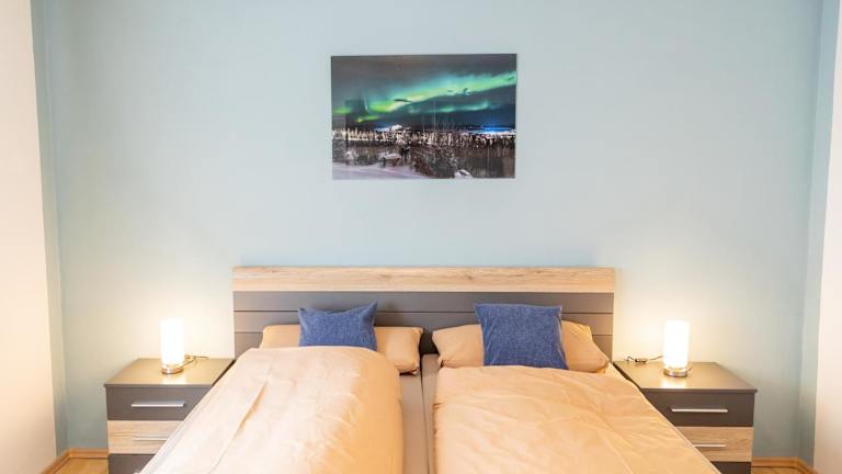 Die Ferienwohnung verfügt über zwei Schlafzimmer, ein Badezimmer, sowie einen Flachbild-TV mit Satellitenkanälen. Ein Essbereich ist vorhanden, ebenso wie eine Kaffeemaschine und eine Terrasse mit Bergblick. Bettwäsche und Handtücher sind inklusive.