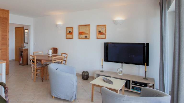 Die Ferienwohnung besteht aus 2 Schlafzimmern und einem Wohnzimmer. Sie ist mit einer voll ausgestatteten Küche ausgestattet, die einen Kühlschrank und eine Kaffeemaschine beinhaltet. Das Badezimmer verfügt über eine Dusche und einen Haartrockner.