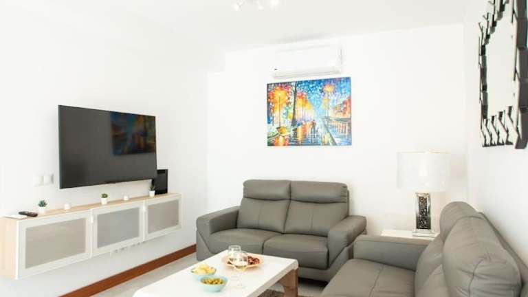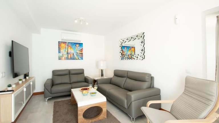 Die Ferienwohnung umfasst zwei Schlafzimmer, eine gut ausgestattete Küche mit Kühlschrank und Geschirrspüler, sowie ein Flachbild-TV und einen Sitzbereich. Es sind zwei Badezimmer vorhanden, ausgestattet mit einer Dusche. Handtücher und Bettwäsche werden zur Verfügung gestellt.
