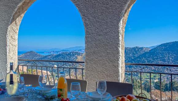 Die Ferienwohnung ist ausgestattet mit 4 Schlafzimmern, 2 Badezimmern, Bettwäsche, Handtüchern, einem TV, einer voll ausgestatteten Küche und einer Terrasse mit Meerblick.
