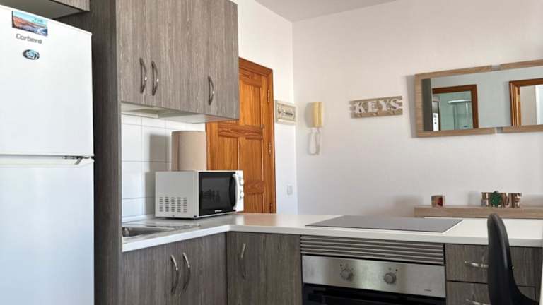 Die Ferienwohnung umfasst ein Schlafzimmer, ein Wohnzimmer mit einem Flachbild-TV, eine gut ausgestattete Küche mit Kühlschrank und Mikrowelle sowie ein Badezimmer mit Dusche. Zudem ist ein Balkon mit Stadtblick vorhanden. Allergikerfreundliche Zimmer sind verfügbar.