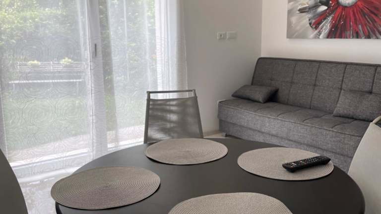 Das Ferienhaus mit Klimaanlage besteht aus einem Schlafzimmer, einem Wohnzimmer, einer voll ausgestatteten Küche mit Kühlschrank und Kaffeemaschine sowie einem Badezimmer mit Bidet und Dusche. Handtücher und Bettwäsche werden zur Verfügung gestellt.