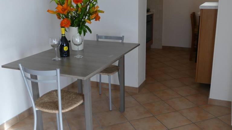 Die Ferienwohnung umfasst ein Schlafzimmer, ein Wohnzimmer und eine voll ausgestattete Küche mit Kühlschrank und Kaffeemaschine. Zudem gibt es ein Badezimmer mit Bidet und Dusche. Handtücher und Bettwäsche werden zur Verfügung gestellt.
