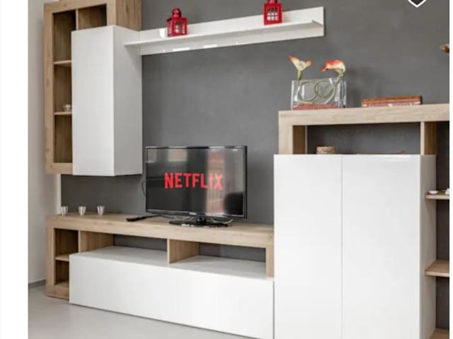 Die Ferienwohnung umfasst zwei Schlafzimmer, eine Küche mit Kühlschrank und Geschirrspüler, einen Flachbild-TV sowie einen gemütlichen Sitzbereich. Es gibt zwei Badezimmer, die mit einem Bidet ausgestattet sind. Handtücher und Bettwäsche werden bereitgestellt.